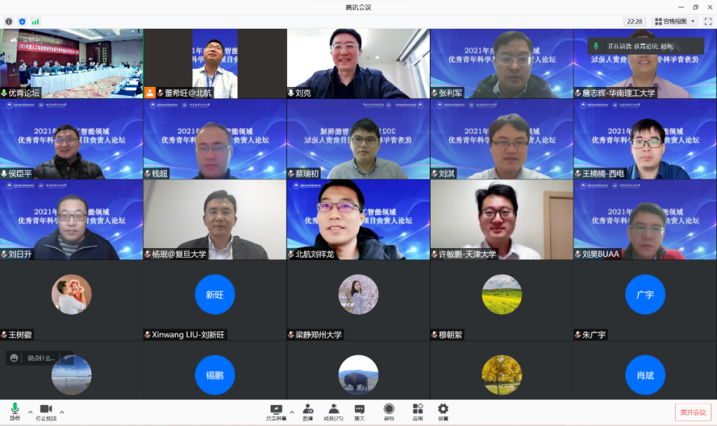 陶飞副院长代表学校向各位专家和领导的到来表示欢迎,并对自然科学基金委以及各位专家长期以来对我校科研工作的支持表示感谢。他指出,北航在人工智能领域具有显著的创新优势,并在全国率先成立了人工智能研究院,希望通过承办本次论坛,能更好的促进国内同行间的学术交流和互动。刘克副主任代表自然科学基金委信息科学部对本次论坛的顺利召开表示祝贺,并对自然科学基金委在人工智能方向的项目布局进行了介绍。他希望参会的专家聚焦人工智能热点和难点,凝练基础科学问题,研讨核心关键技术,为我国人工智能发展建言献策,服务科技自立自强的国家发展战略。