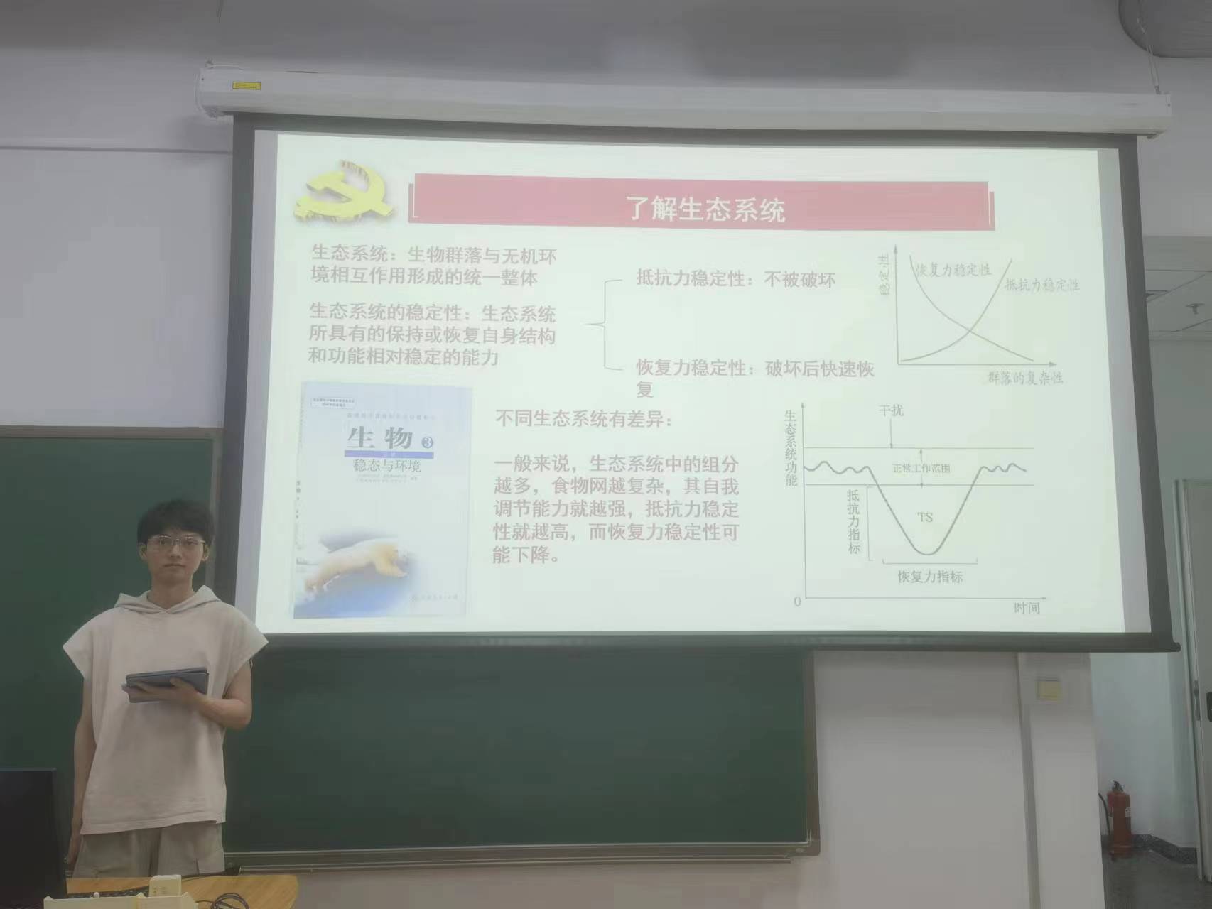 陈石同学则告诫我们要保护生态系统。首先从理论角度解释了生态环境的运作原理,有力地论证了保护生态系统的必要性。接着,他指出在党的二十大报告中提到,要提升生态系统多样性、稳定性、持续性。为了实现这一目标,国家已经采取了一系列政策,如因地制宜,抵抗恢复两手抓,或是通过生物多样性,提升生态系统本身的自我修复能力。他以长江十年禁渔为例,说明了禁渔对于恢复水生资源、保护水域生态、促进渔业转型升级的重要意义。