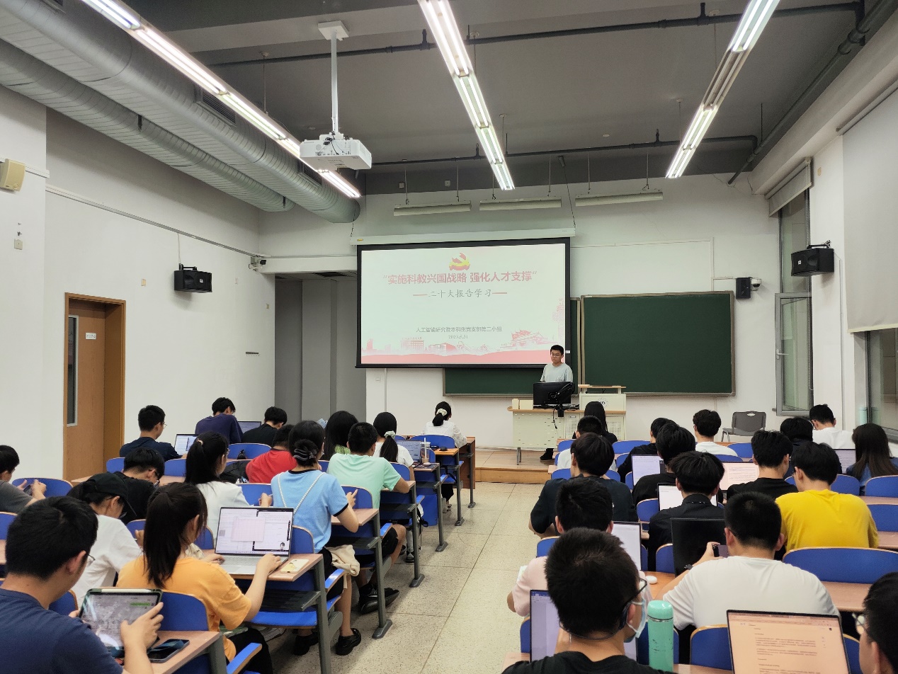 本次微党课由人工智能研究院本科生党支部第二党小组为本科生党员和入党积极分子主讲《实施科教兴国战略,促进人与自然和谐共生》党课。本次微党课结合党的二十大报告内容,围绕科教兴国、人才支撑主题,分别从科技自立自强、科技是第一生产力、创新是第一动力、人才是第一资源进行讲解。