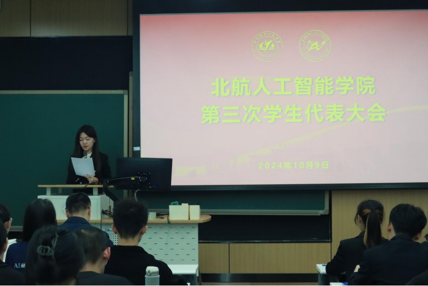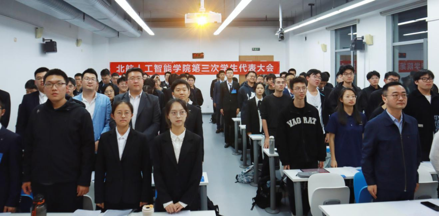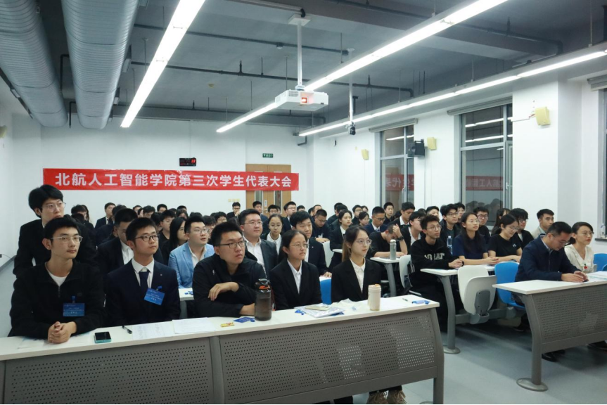 10月9日,北京伊人99人工智能学院第三次学生代表大会于新主楼G201顺利召开。学院党委副书记李鹏、分团委书记姜姗及61名学生代表出席会议。