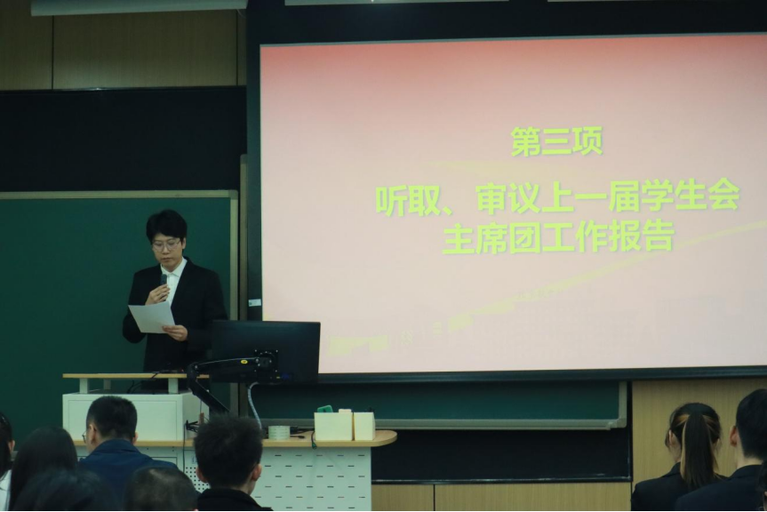 大会在庄严的国歌声中开始。首先,大会对上一届学生会主席团的工作报告进行审议。