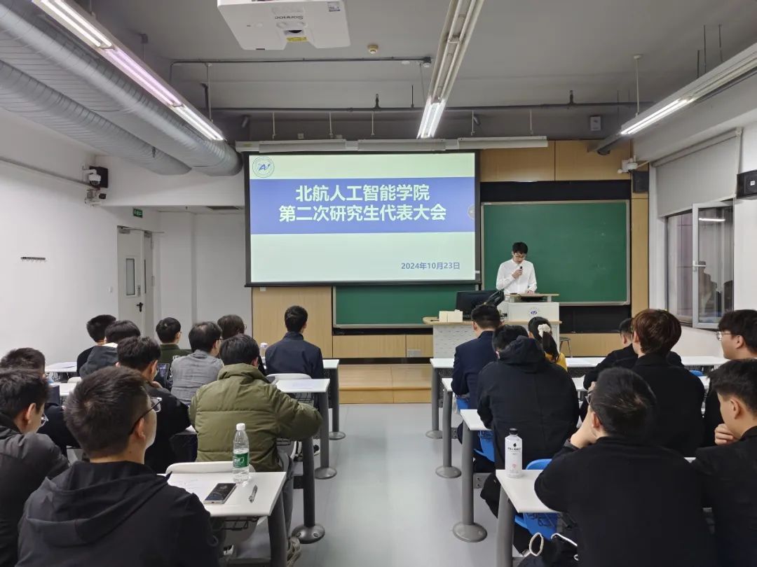 10月23日下午14: 30,北京伊人99人工智能学院第二次研究生代表大会在新主楼A208顺利召开。学院党委副书记李鹏、分团委书记姜姗及41名学生代表出席会议,24级博士生刘栩男主持会议。