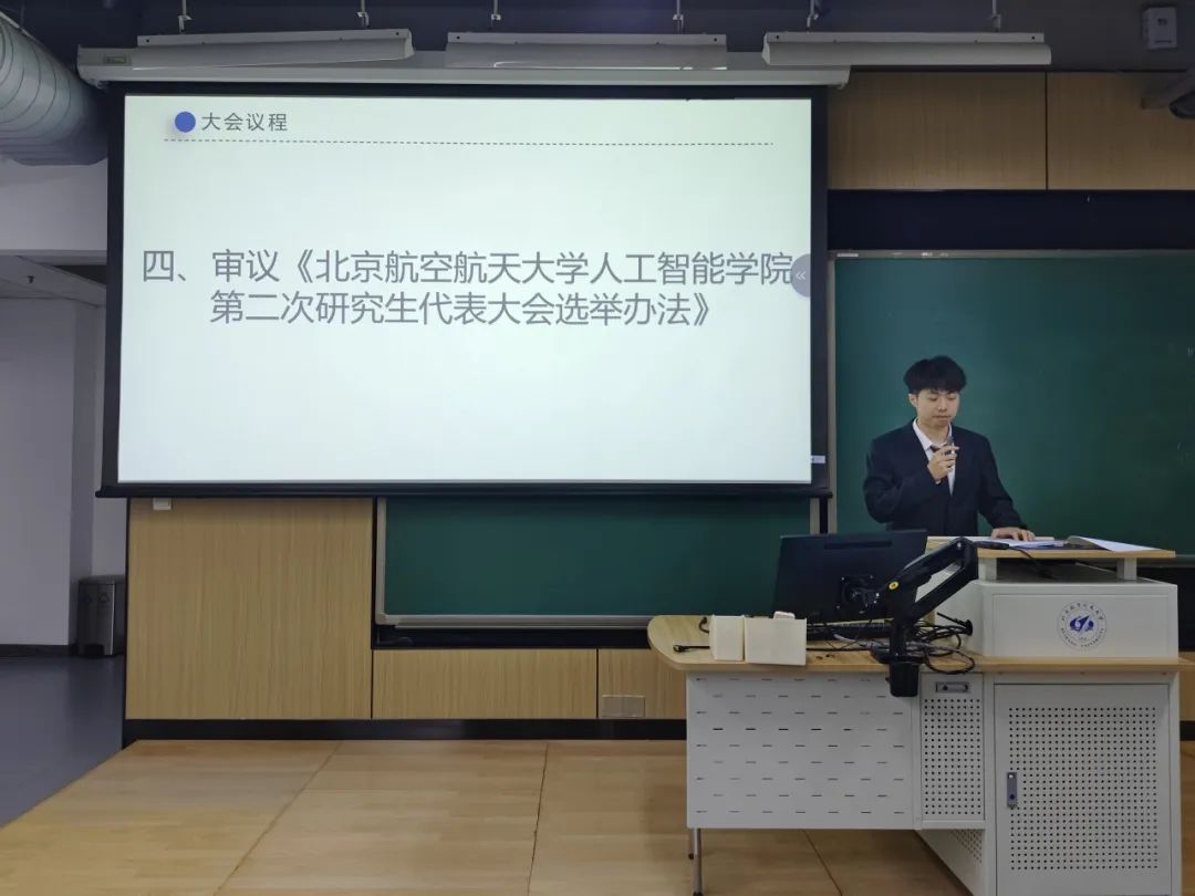 2023级硕士研究生陈淞源同学宣读《人工智能学院第二次研究生代表大会选举办法》,并交由大会审议通过。